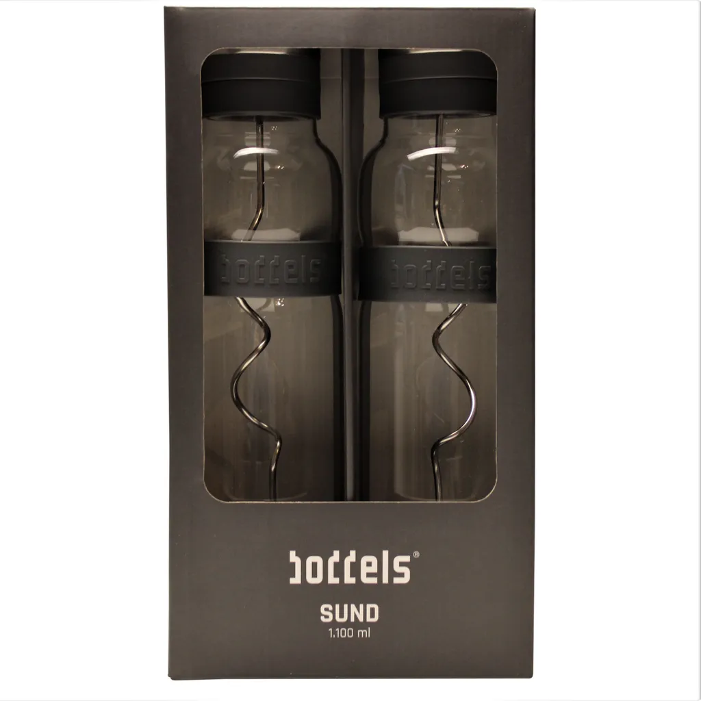 » 2 hochwertige Glaskaraffen aus Borosilikatglas mit Edelstahl Deckel und 2 Silikonringen. Diese Silikonringe geben beim Einschenken einen sicheren Halt und verhindern ein Tropfen nach dem Ausgießen.