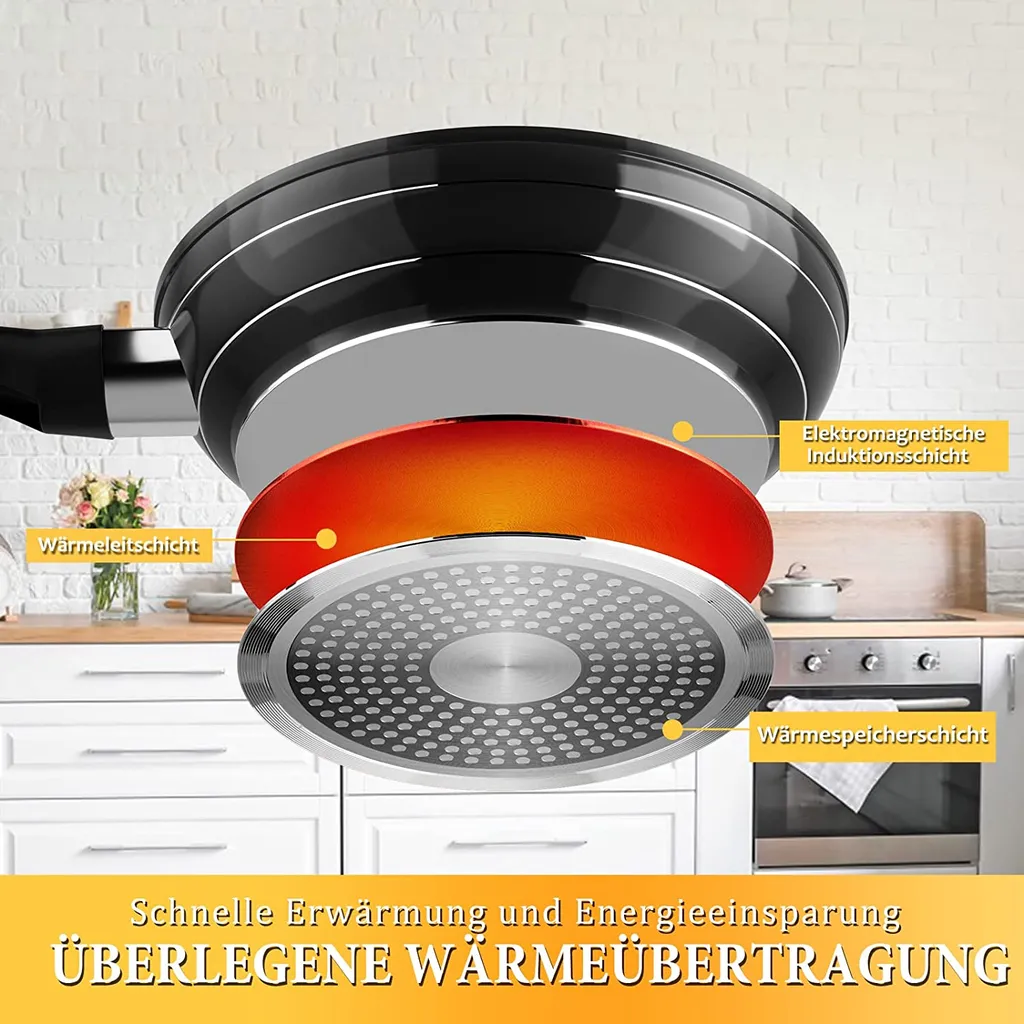 【Kompatibel mit All Surface Induction】Induktions-pfannen-Set ist perfekt geeignet für Gas-, Ceran-, Elektro-, Halogen- oder Induktionsherde.Dieses Induktions-Bratpfannen-Set kann verschiedene Kochmethoden anwenden, um köstliche Speisen zuzubereiten, die Ihren Magen befriedigen. Wir sind hier, um Ihnen nur die besten e anzubieten, die entwickelt wurden, um Ihr Leben einfacher zu machen. Wenn Sie Hilfe benötigen, können Sie sich gerne an uns wenden.