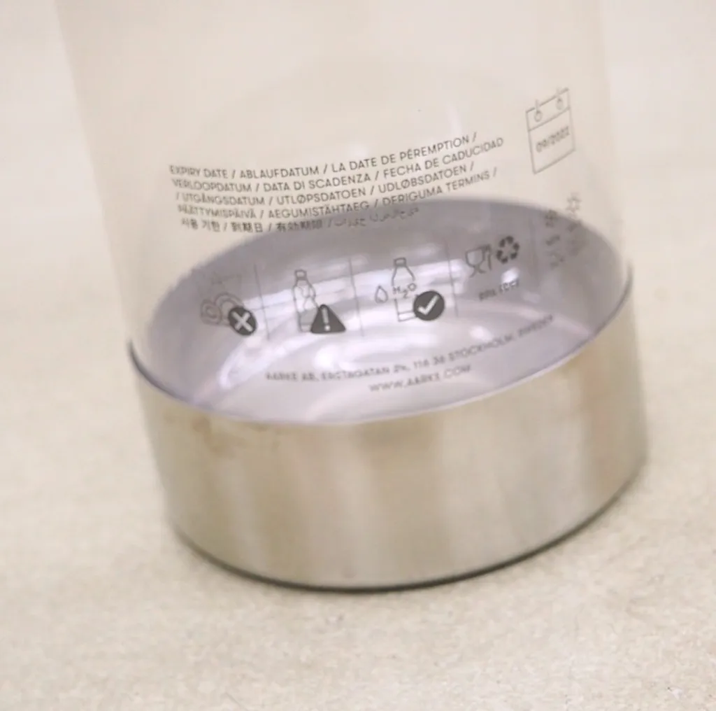 - Nicht spülmaschinengeeignet – Extreme Temperaturen, wie beispielsweise in der Spülmaschine oder im Gefrierschrank, können die Flasche beschädigen. In einem solchen Fall sollte die Flasche sofort entsorgt und ersetzt werden.