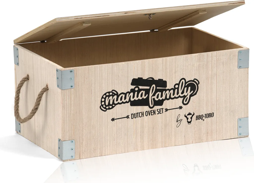 Das ultimative Dutch-Oven Set! Das Mania Family-Set beinhaltet alles, was ein Feuertopf-Fan benötigt. Der 4,2 Liter Premium Gusseisen Kochtopf bildet in Kombination mit viel kleinem Zubehör eine große Dutch Oven Familie, mit der jedes Gericht gelingt!