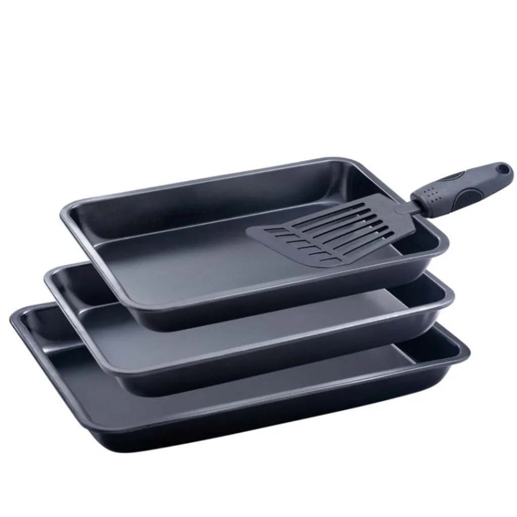 Praktisches Set der Marke Renberg bestehend aus 3antihaftbeschichteten Backblechen plus einen Pfannenwender.