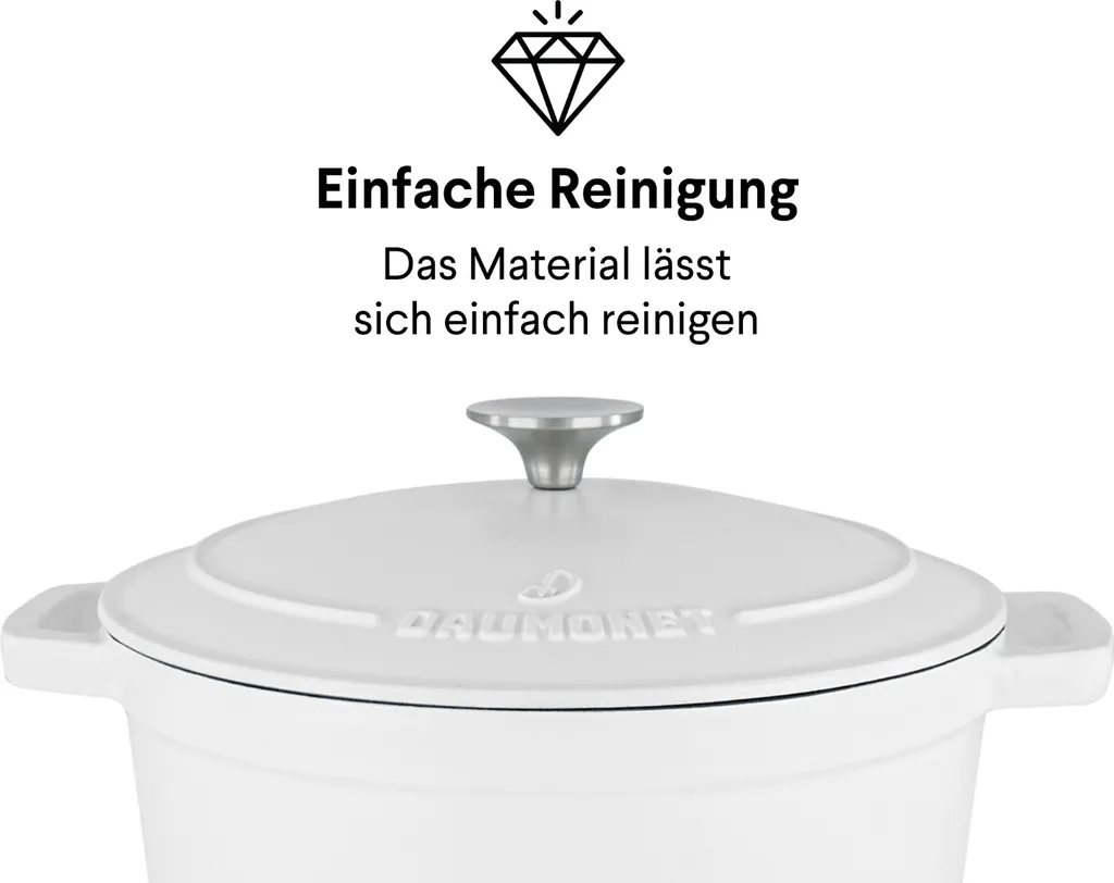 - HOHE QUALITÄT beim Garen : Dank der gusseisernen Pfanne wird das Essen von jeder Seite gleich stark erhitzt. Die heißen Dampfsäfte auf der Innenseite des Deckels beträufeln das Fleisch. So wird das Fleisch zart und trocknet nicht aus!