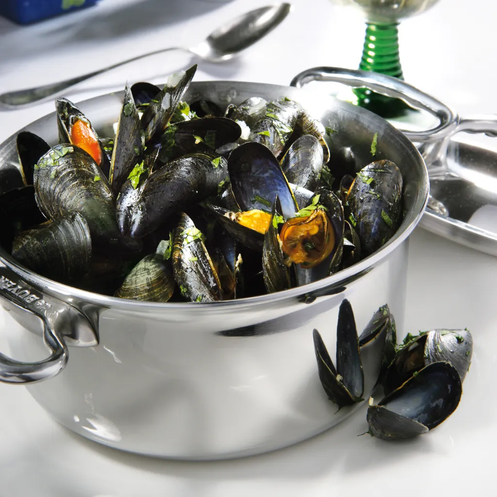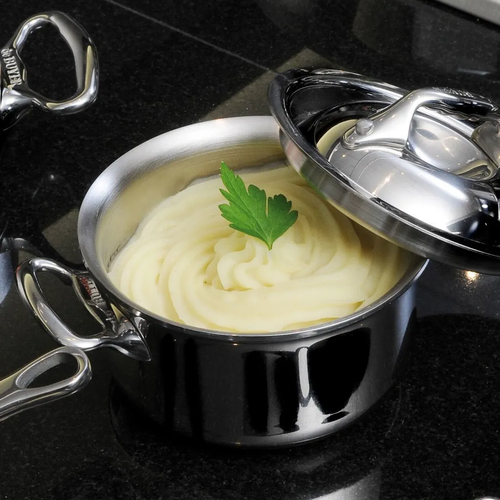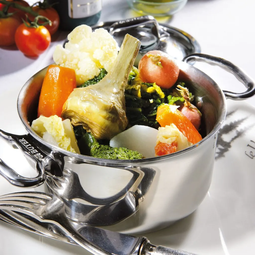 Gleichmäßige Erhitzung mit den Töpfen von de Buyer Die Affinity Kollektion von de Buyer wird aus abwechselnder Edelstahl- und Aluminumschicht hergestellt. Die optimale Wärmeverteilung und die gleichmäßige Erhitzung sorgen für ein effektives Energiesparen. Die ergonomischen Stiele und Henkel sind aus vernietetem Edelstahl und liegen besonders angenehm in der Hand. Durch die einfache Reinigung – dieses Produkt darf in die Spülmaschine – ist diese Kollektion der französischen Traditionsfirma überall sehr beliebt.