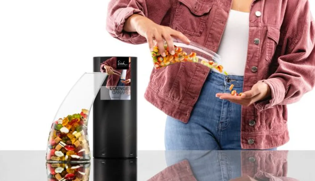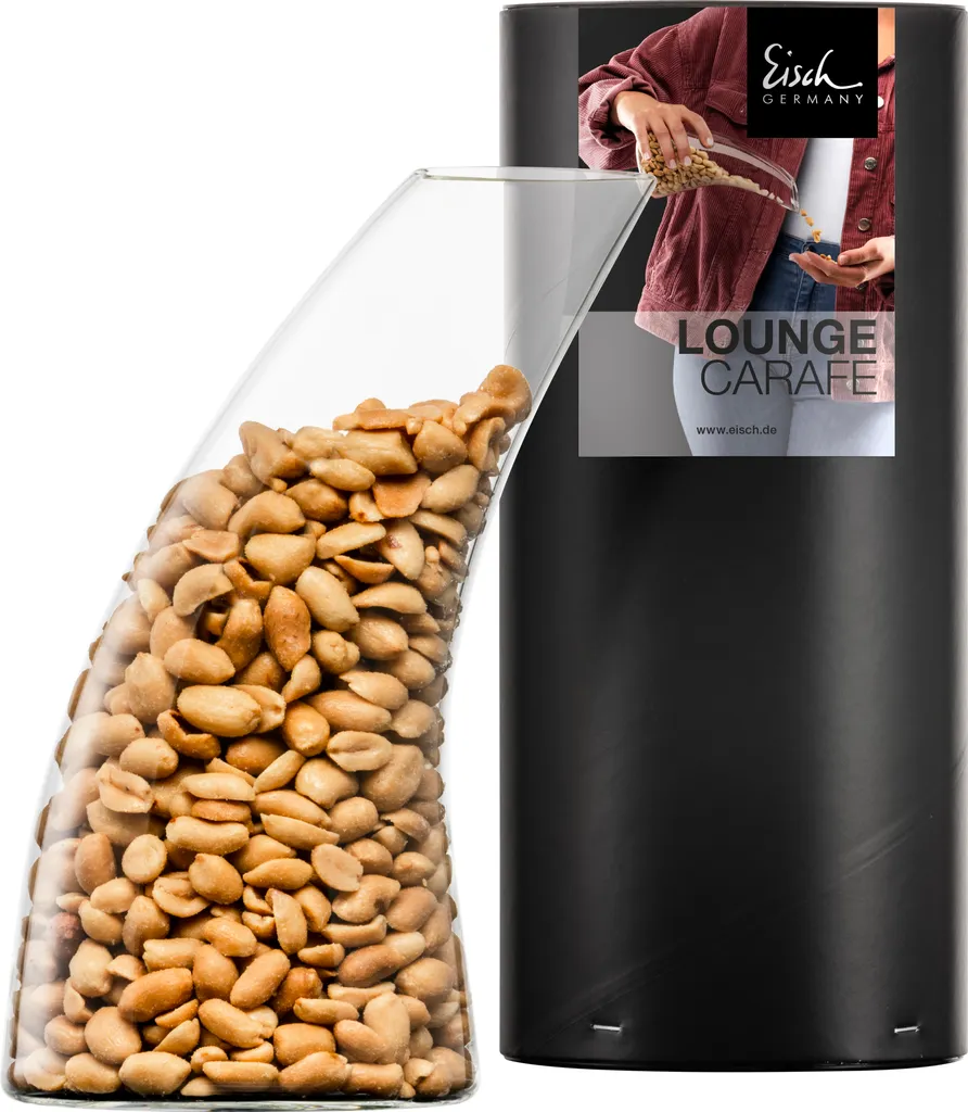 – 1 Eisch Nuss-Spender LOUNGE CARAFE in Geschenk-Röhre zum stilvollen und hygienischen Servieren von Knabbereien