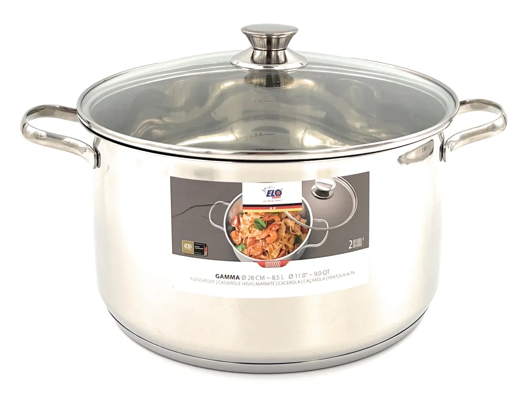ELO Fleischtopf Mit Deckel Ø16 Cm, Ø20 Cm, Ø24 Cm, Ø28 Cm, Edelstahl, Größe:Ø28 Cm