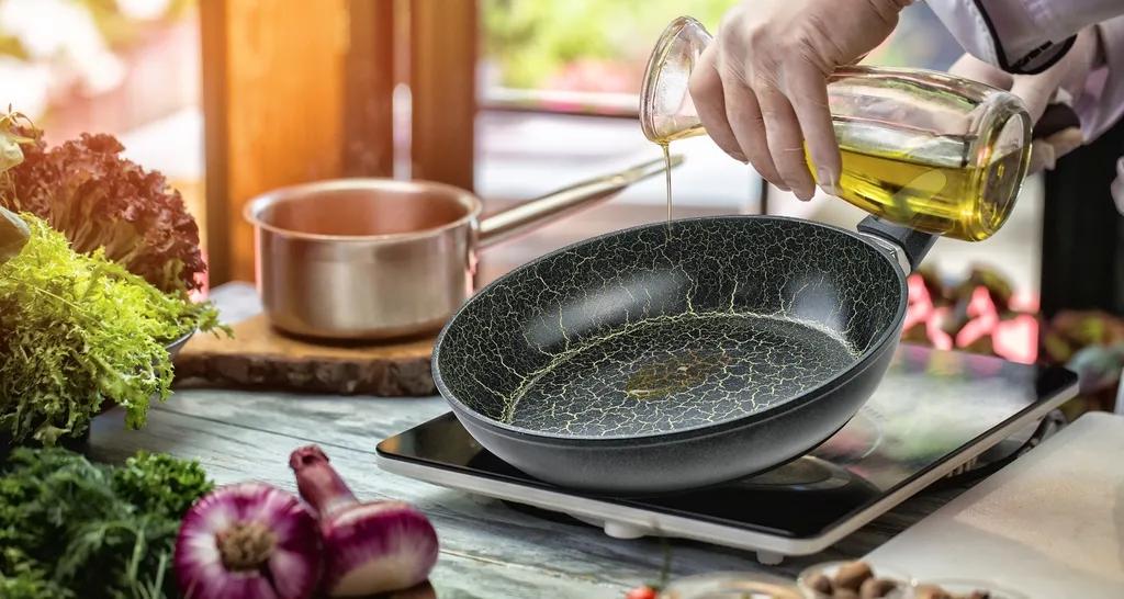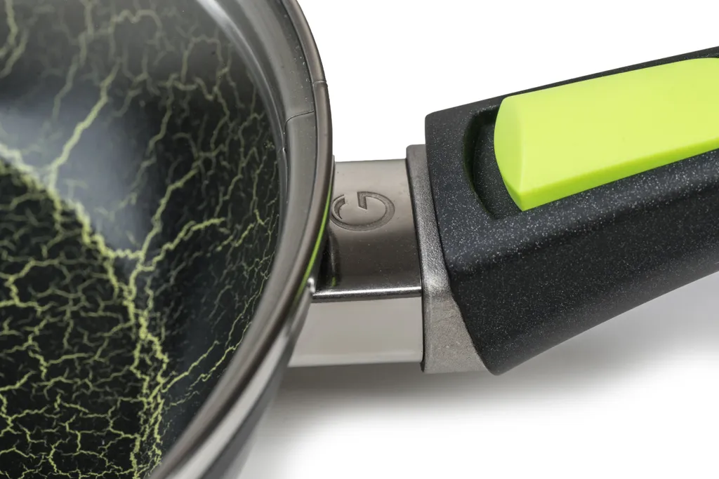 Die Struktur der „aufgebrochenen“ Oberfläche verbessert zusätzlich die Antihaft-Performance und hebt Kochen auf eine neue Stufe.