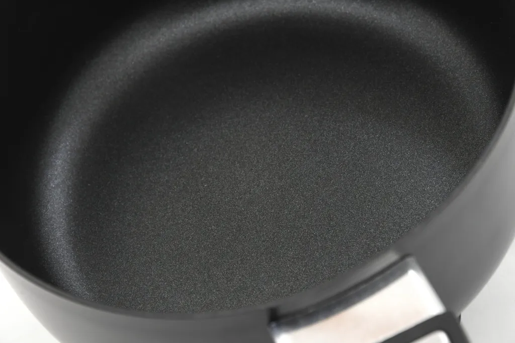 Die Innenseite des Topfes ist mit einer Antihaftbeschichtung versehen, die eine einfache Reinigung ermöglicht und das Anbrennen von Speisen verhindert. An der Außenseite sorgt der mehrteilige Griff für eine bequeme Handhabung und schützt Ihre Hände vor hohen Temperaturen.