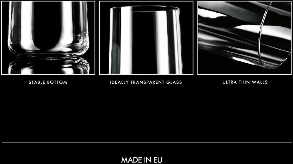 MODERNE FORM – Breiter, stabiler Boden, das Glas das sich nach oben hin verjüngt und die dünnen Wände des Glases sehen unabhängig von der Innenarchitektur gut aus.