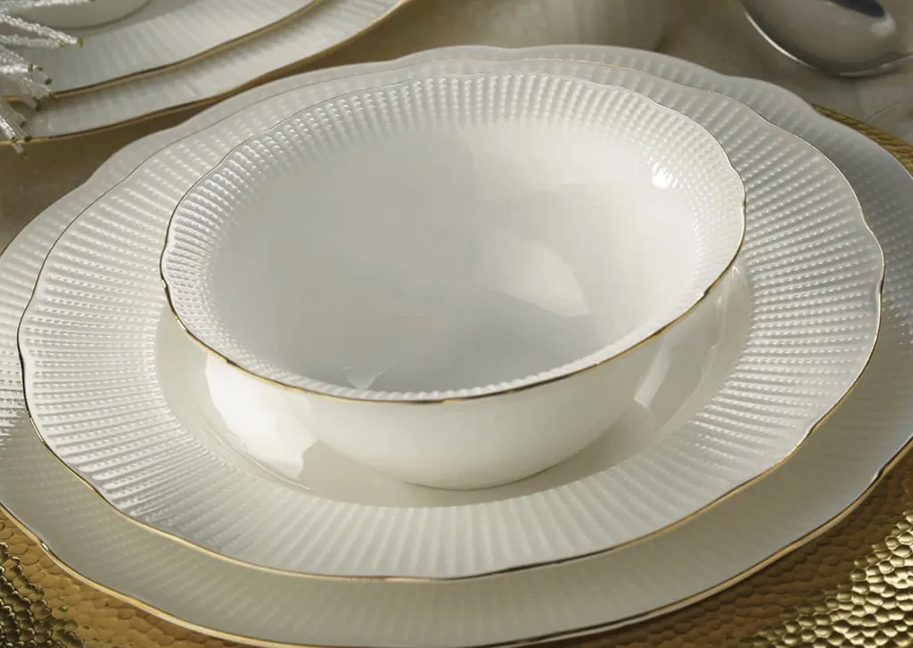 Kütahya Ilay Gold 24 Teile Porzellan Teller Tafelservice Set