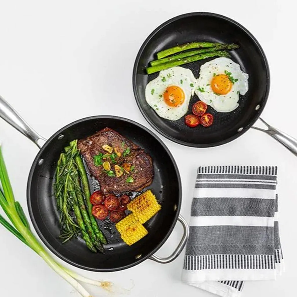 Livington Dura Pan – Pfannenset Mit Universaldeckel – 28cm + 24cm Pfanne – 3-lagige Antihaftbeschichtung – Pflegeleichtes Edelstahlgehäuse – Für Alle Herdplatten Geeignet