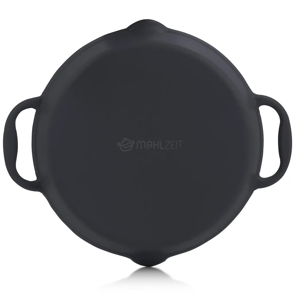 Die emaillierte Gusseisenpfanne von Mahlzeit eignet sich bestens zum Braten von Fisch und Fleisch, aber auch zum Schmoren von Gemüse und vielen anderen Gerichten. Die Gusseisen-Pfanne verfügt über eine gute Wärmeleitung und verteilt die Hitze gleichmäßig auf das Bratgut.
