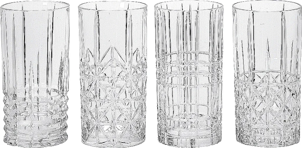 De Nachtmann Highland serie kenmerkt zich door een karakteristiek patroon aan de buitenzijde van het glaswerk. Het leuke aan deze serie is dat de vier glazen allemaal een ander patroon hebben. De vierdelige set longdrinkglazen is o.a. te gebruiken voor softdrinks, cocktails en water.