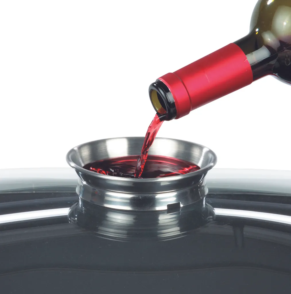 Aus hochwertigem Aluminium-Guss, mehrfache langlebige Antihaft-Versiegelung – kein Ansetzen des Bratgutes, für fettarme und fettfreie Zubereitung von Speisen, Aroma-Glasdeckel – zum Beträufeln des Bratgutes z.B. mit Wein, Inklusive Gittereinsatz aus Edelstahl. Für alle Herdarten geeignet, außer Induktion, Backofengeeignet bis 240°C