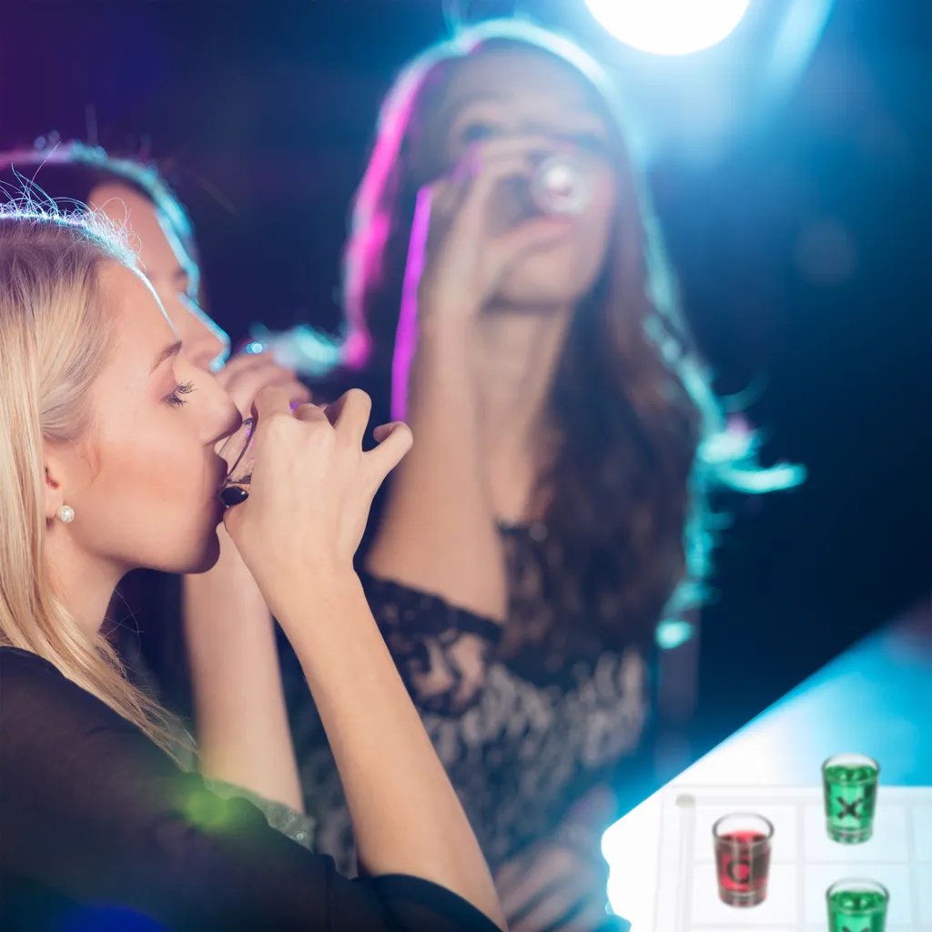 Mit diesem witzigen Trinkspiel sorgen Sie definitiv für feucht-fröhliche Stimmung auf der nächsten Party. Gespielt wird jeweils zu zweit. Dabei können Sie selbst entscheiden, wann getrunken werden soll: Vor jedem Zug, nur der Verlierer muss trinken oder nur der Gewinner darf trinken. Die kleinen Shotgläser sind dabei ideal für verschiedene Liköre und Spirituosen. Nach der Party können die Gläser einfach in der Spülmaschine gereinigt werden.