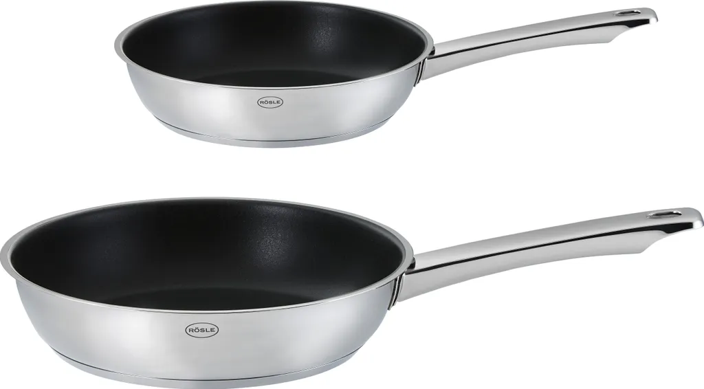 Dieses Rösle Pfannenset besteht aus 2 Pfannen mit einem Durchmesser von 20 und 28 cm. Die Bratpfannen sind mit Antihaftversiegelung ProPlex versehen. Dadurch sind sie ideal für leicht haftendes Bratgut und Mehlspeisen. Der gekapselter Boden mit Aluminiumkern sorgt für eine gleichmäßige Wärmeleitung und -speicherung. Die Pfannen sind zudem Spülmaschinengeeignet.