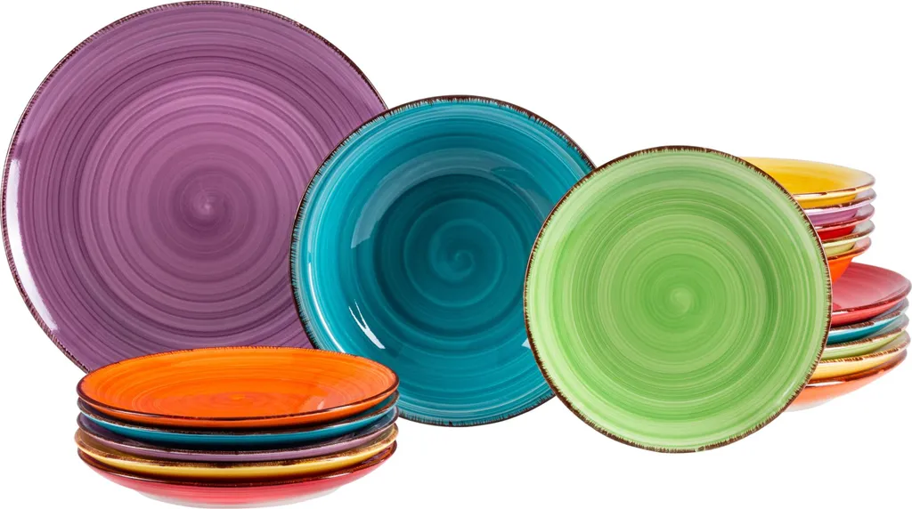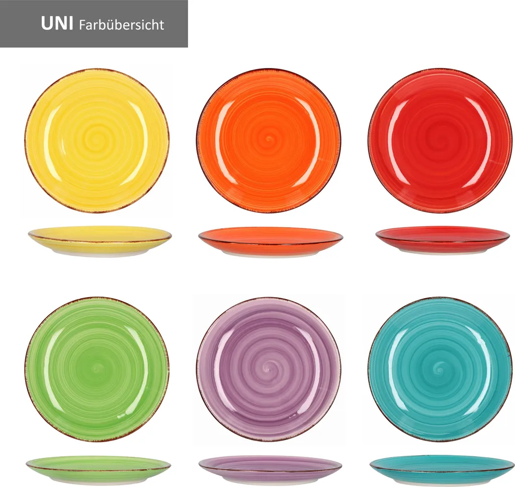 18-tlg. Tellerset Uni bunt, 6 verschiedene Farben: