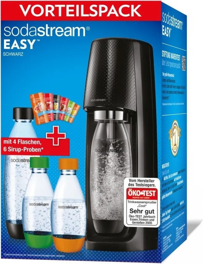 SodaStream Easy Trinkwassersprudler Schwarz + Flaschen Sirupproben CO2-Zylinder