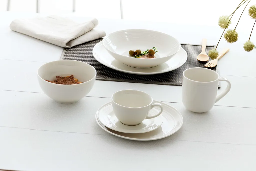 Kaffeeservice Palazzo 18tlg. – Weiß MitNachbildung-Kreisen In Grau Und Dunkelrot – Für 6 Personen
