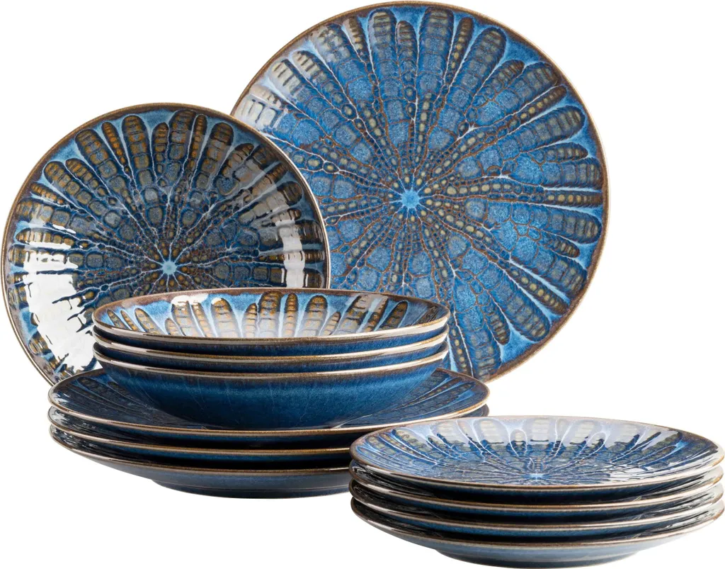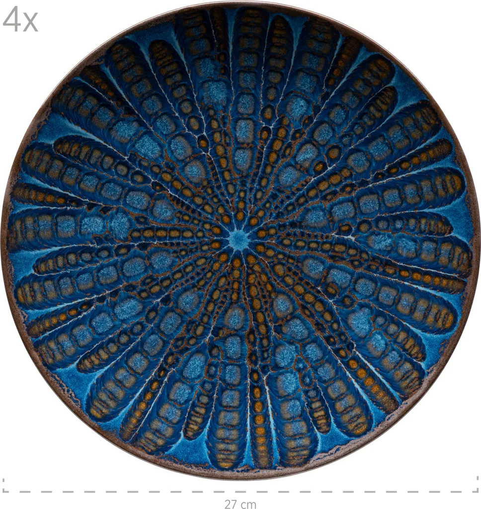 Tiefblaue Farben fließen bei der Keramikgeschirr-Kollektion „Aquamarine“ der österreichischen Traditionsmarke MÄSER über naturfarbene Nachbildunge und bilden auf jedem Teller und jeder Schale ein einzigartiges Muster aus. Die besondere Glasurtechnik dieser außergewöhnlichen Essgeschirr-Serie macht jedes Teil zu einem echten Unikat! Die Kollektion Aquamarine wird in Portugal unter nachhaltigen Bedingungen aus regional gewonnenem Steinzeug gefertigt. Bei Steinzeug handelt es sich um eine hochwertige Form der Keramik, welche nicht mit dem brüchigeren und poröseren Steingut zu verwechseln ist. In seiner täglichen Handhabung unterscheidet sich hochwertiges Steinzeuggeschirr kaum von Porzellangeschirr: Die gesamte Serie ist mikrowellen- und spülmaschinengeeignet, hitzebeständig und tiefkühlgeeignet und damit absolut alltagstauglich. Bitte beachten Sie: Durch die besondere Glasurtechnik können minimale Unebenheiten in der Glasur auftreten, ebenso tragen Farbabweichungen zwischen verschiedenen Teilen zum typischen, lebendigen Charakter dieser Kollektion bei. Zur besseren objektiven Vergleichbarkeit gehen unsere Füllmengenangaben stets von einer randvollen Befüllung aus.