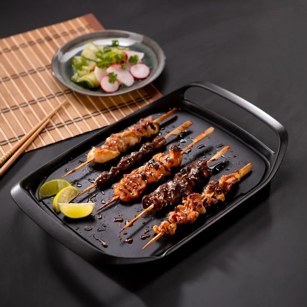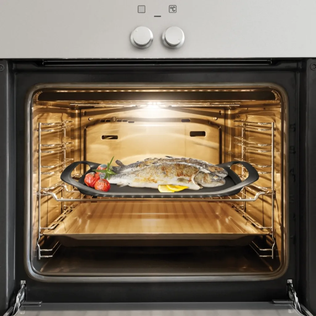 Die geräumige Bratpfanne mit hitzebeständigen Silikon-Griffen und mit glatter Oberfläche, hervorragend zum Grillen von Fisch, Gemüse, Fleisch sowie zum Servieren davon. Mit 2 Wärme-Zonen: Die Mitte der Pfanne zum intensiven Grillen, die Ränder zum Abbacken und zur Temperaturhaltung der Gerichte. Die erstklassige Antihaft-Beschichtung gegen Anbrennen und der für alle Herdarten geeignete Induktionsboden aus rostfreiem Edelstahl Spülmaschinenfest.