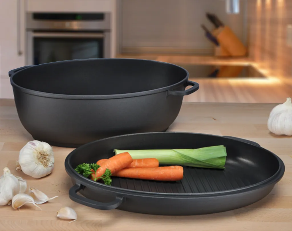 Aluguss-Bräter und Aluguss-Grillpfanne