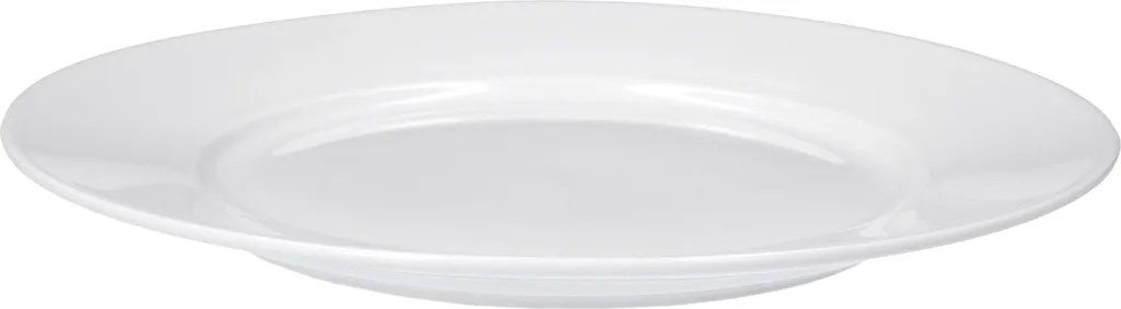 Der flache Teller mit einem Durchmesser von Ø 270 mm macht sich am kalten oder warmen Buffet auch als Servierplatte besonders nützlich. Servieren Sie Tortenhappen oder Gebäck am Tisch oder stellen Sie den großen Teller für den Hauptgang bereit, dessen Spiegel Ø 160 mm misst. Gewicht: 690 g.