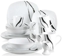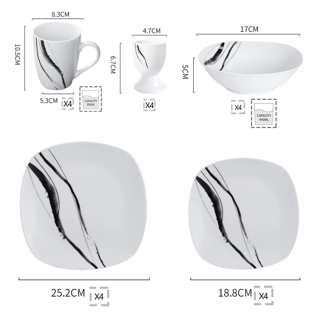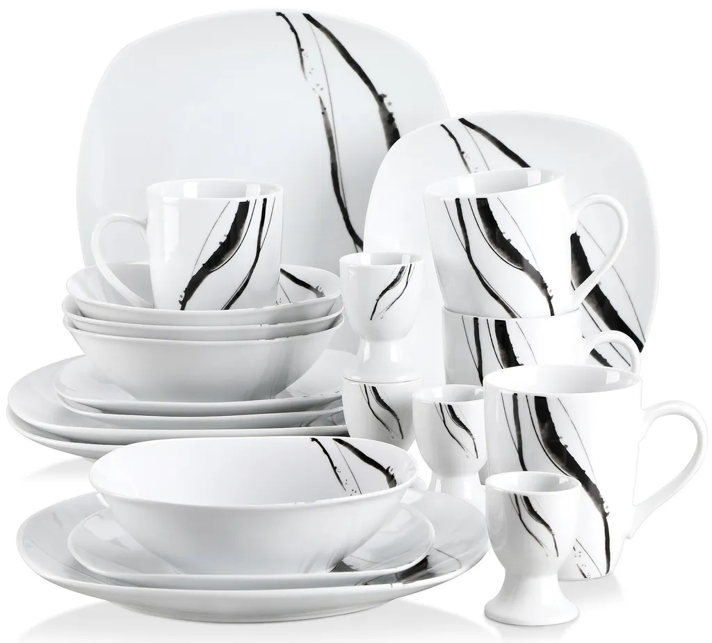 VEWEET Tafelservice ‚Teresa‘ Aus Porzellan 20 Teilig, Geschirrset Beinhatlet Eierbecher, Kaffeetassen, Müslischalen, Dessertteller Und Flachteller, Geschirrservice Für 4 Personen